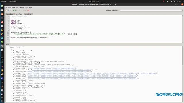 iTunes è un programma software che funge da lettore multimediale, libreria multimediale, utilità di gestione dei dispositivi mobili e app client per iTunes Store. Quello che alcuni di voi ignorano, invece, è che è possibile “interrogare” l’intero database di iTunes alla ricerca di un brano, di un autore, del contenuto di una raccolta o dell’opera omnia di un cantante o di un gruppo con poche righe di Python, e senza dover scaricare il programma. Vediamo come! Iscriviti al canale e premi la campanellina, altrimenti perderai i prossimi video! Seguici per non perdere le prossime novità https://www.instagram.com/moreware.org.wp/?hl=it https://bit.ly/MoreWare_Telegram https://bit.ly/MoreWare_Facebook https://bit.ly/MoreWare_Youtube https://bit.ly/MoreWare_Offrici_un_caffe https://bit.ly/MoreWare_BLOG https://bit.ly/MoreWare_Twitter https://bit.ly/MoreWare_Linkedin Supportaci usando i nostro link affiliazione Amazon, a te non costa nulla, basta aprire Amazon con questo link https://amzn.to/37N7JJE , poi compra ciò che preferisci. Canale offerte: https://t.me/offertepermakers Gruppo Makers Italia https://t.me/makeritalia