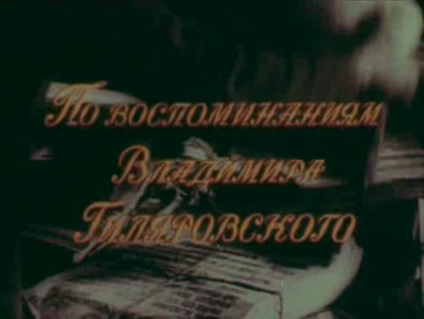 Репортаж из прошлого. По воспоминаниям Владимира Гиляровского. Часть 2. Друзья и встречи. Год выпуска: 1986 Жанр: документальный Режиссер: Юрий Риверов В ролях: Олег Табаков В фильм, решённый в игровой форме, включён фильмотечный материал, отражающий жизнь России на рубеже ХIХ-ХХ веков. В центре фильма образ знаменитого "дяди Гиляя" - московского журналиста В.А.Гиляровского. В роли Гиляровского - О.Табаков. В фильм включены воспоминания В.А.Гиляровского о встречах с Л.Н.Толстым, А.П.Чеховым, И.И.Левитаном, М.Горьким, Ф.И.Шаляпиным, А.К.Саврасовым