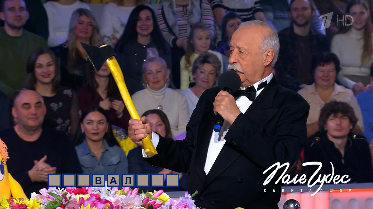 Участник второй тройки Михаил Ермилов из Рязани подарил Леониду Якубовичу сувениры из родного города — грибы и... топор. Но вручение подарков пошло не по плану — ведущий сразу отобрал топор у Михаила.