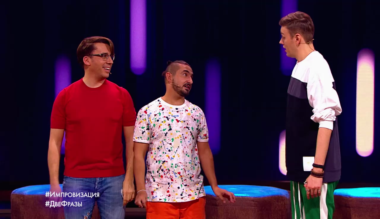 Импровизация «Две фразы». Супер-герой отправляется на задание с новым помощником, который заменил предыдущего погибшего помощника. В гостях - Максим Галкин. Пользоваться в этой импровизации он будет всего двумя фразами. Вопросительная - А ничего лучше ты не придумал? Утвердительная - Да это праздник какой-то. Начнет импровизацию с гостем Антон Шастун. А все остальные ребята подключатся в момент, когда посчитают нужным.