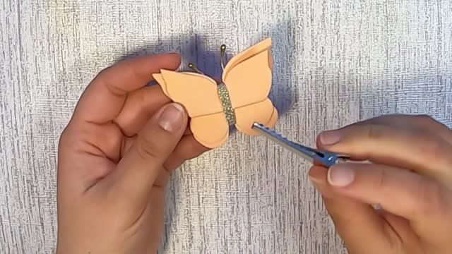 Нежная бабочка из тонкого фоамирана. Делается легко и без готового шаблона. Красиво будет смотреться на заколке, ободке или повязке. Подробный мастер класс. A delicate butterfly made of fine foamiran. It is done easily and without a ready-made template. It will look beautiful on a hairpin, headband or bandage. A detailed master class.