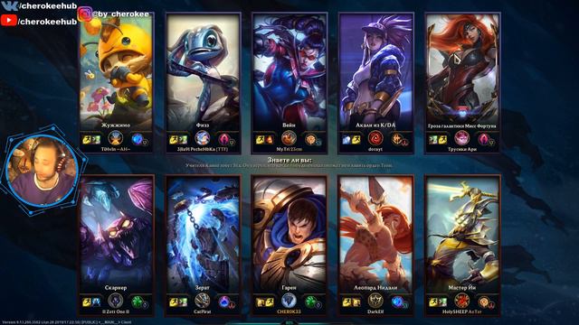 Бросил ДОКУ 2 ушел в ЛОЛ. Шило на мыло. ------------------------------------------------------------------------------------------------------- League Of Legends | Катаем пабчики/АРАМЧИКИ в пати. RU сервер. |TFT| ------------------------------------------------------------------------------------------------------- Добро пожаловать на мой канал.Меня зовут Дима, мне 24. Живу в России и если ты первый раз на канале не забывай подписаться. Иногда играю,иногда стримлю....!! ------------------------------------------------------------------------------------------------------- Правила чата: - Запрещены срачи на тему политики, религии, расовой принадлежности. - Запрещено оскорблять стримера и участников чата. - Запрещены какие-либо спойлеры. - Мат не запрещен, но рекомендую стараться обходиться без него. Не превращайте чат в болото. - Любители советовать стримеру как ему играть, могут быстро отправиться в бан, поэтому действуйте на свой срах и риск. ------------------------------------------------------------------------------------------------------- Помощь в развитии и улучшении качества контента: https://www.donationalerts.com/r/cherokeehub ------------------------------------------------------------------------------------------------------- Группа вк: https://vk.com/cherokeehub Instagram: https://www.instagram.com/by_cherokee_/ ------------------------------------------------------------------------------------------------------- ПОДПИСВАЙСЯ И СТАВЬ ЛАЙК ЕСЛИ НЕ ...!!!1! ------------------------------------------------------------------------------------------------------- #стрим #tft #leagueoflegends