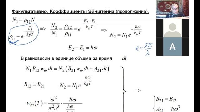5 лекция, часть 1, Оптика, СПбГУ, 2021, Крылов И. Р., коэффициенты Эйнштейна (продолжение).