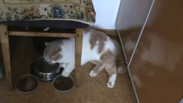 Лежачий кот пьет воду, ему так удобнее.