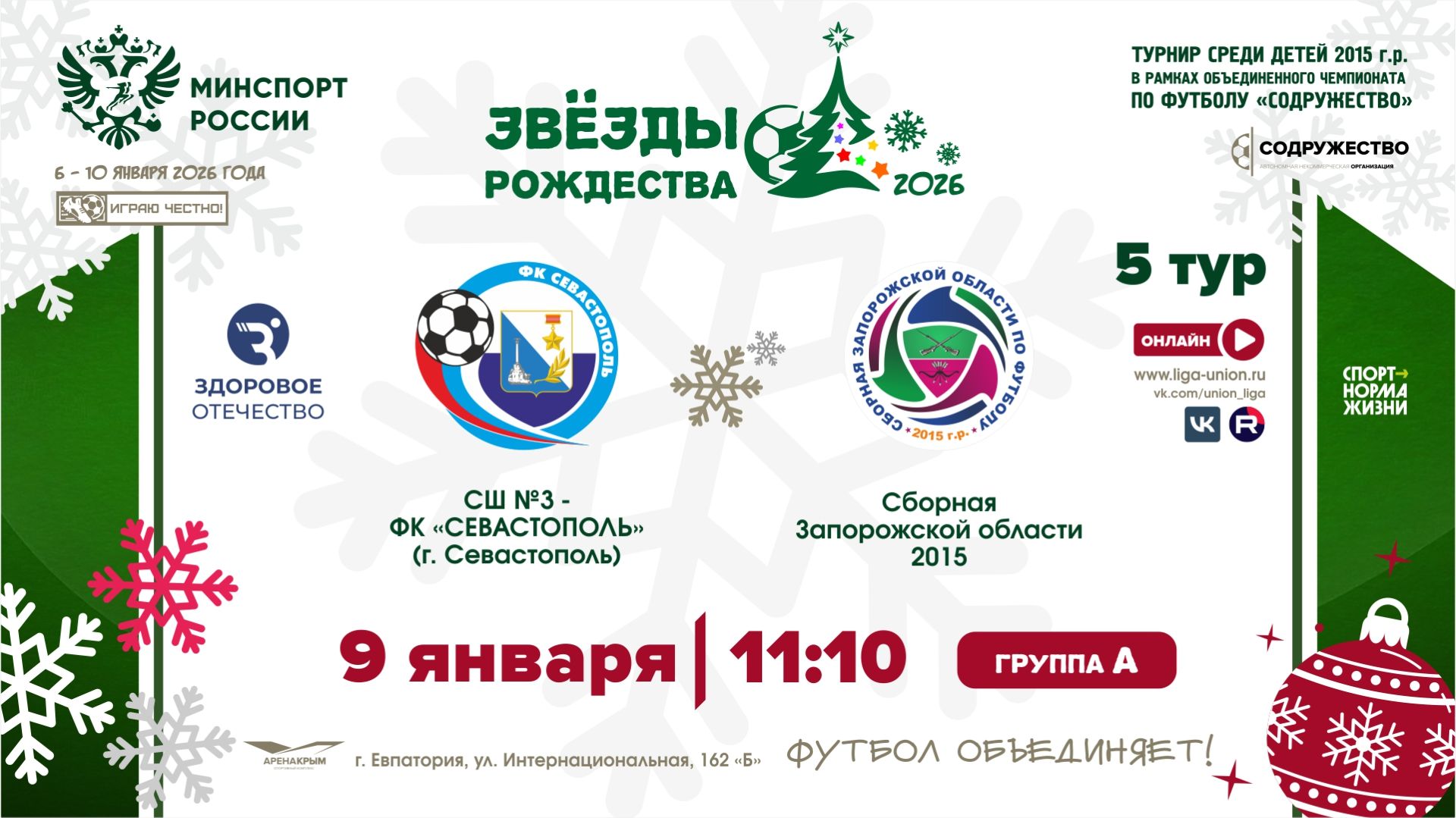 5 ТУР [А] | СШ №3-ФК «Севастополь» (Севастополь) - Сборная Запорожской области 2015 г.р. | 9.01.2026
