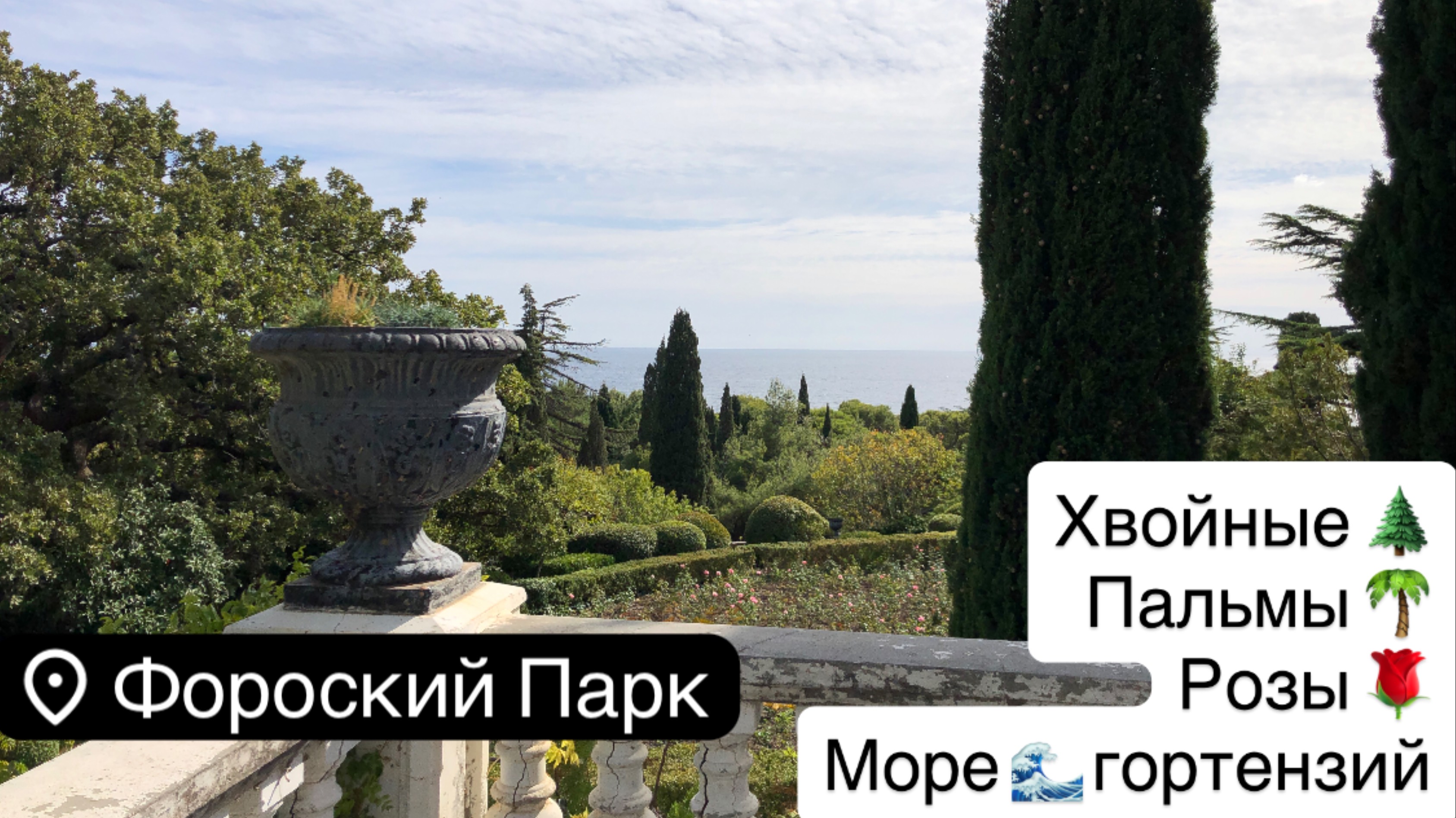Прогулка по Фороскому парку в конце сентября- хвойные, пальмы, розы, гортензии, море и набережная