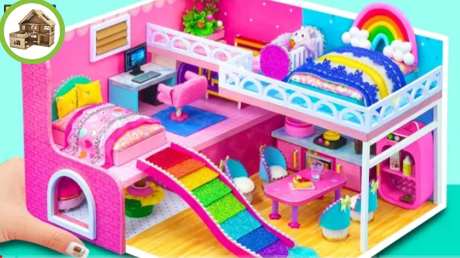 Миниатюрный особняк с 2 спальнями и горкой raibow для своих кукол своими руками