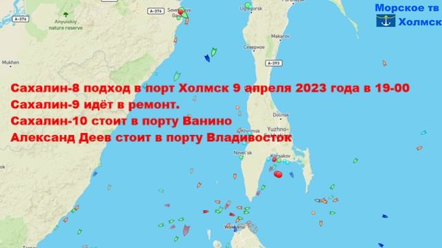 Позиция пассажирских судов для линии Ванино - Холмск 8 апреля 2023 года
