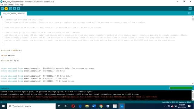 Download Arduino: https://www.arduino.cc/en/Main/Donate Code: https://drive.google.com/file/d/1MYSy39IytcG5gKy9I0RtbLRMKksJk-jF/view Download Board manager: Files /preference/additional boards /paste http://arduino.esp8266.com/stable/package_esp8266com_index.json Homemade projects with esp8266 esp8266 projects Arduino project projects to do at home with Arduino how to make fish food feeder automatic how to use millis function