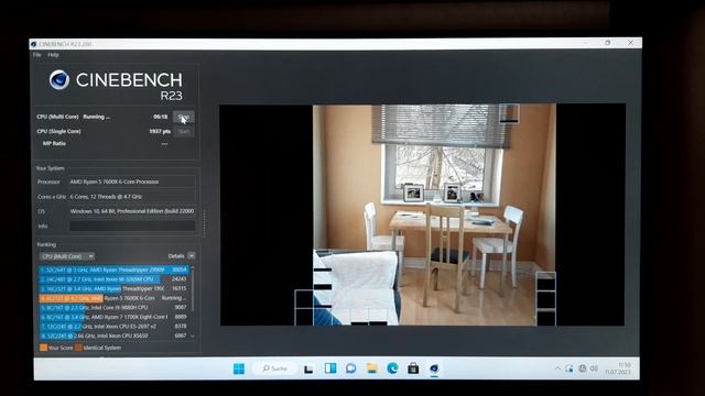 During Cinebench R23 Multi Core benchmark (AMD Ryzen 5 7600X)