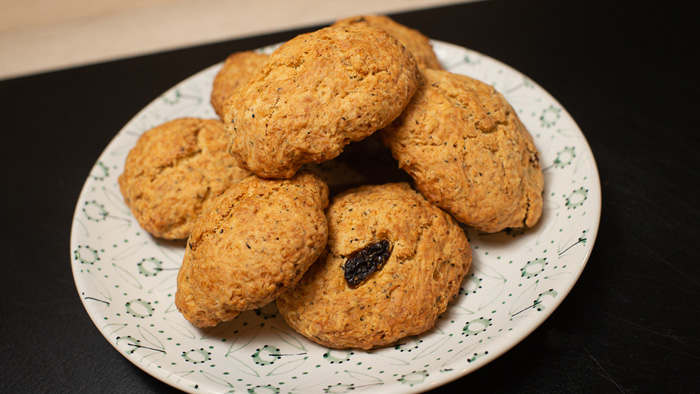 Английские сконы с изюмом. Яблочный крамбл. Чай масала