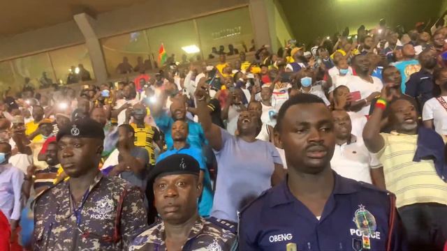 Journalists and fans singing the Ghana national anthem with passion ahead o the Ghana-Nigeria game