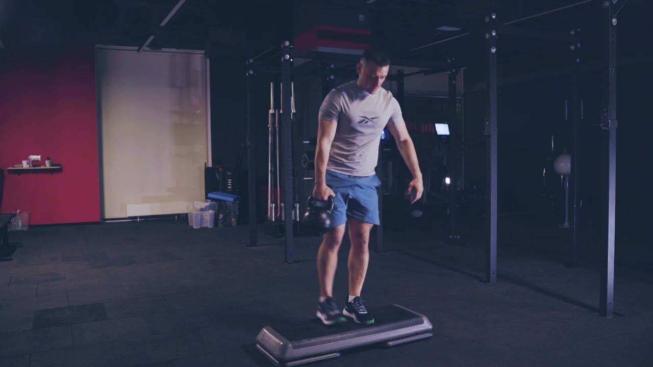 Выпад с возвышенности с гирей/ Reverse elevated KB lunge