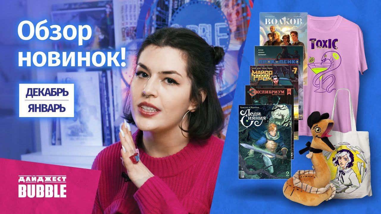 Специально для тех, кто не был на фестивале BUBBLE Comics Con или в потоке горячих анонсов пропустил выход новых комиксов, мы подготовили свежий дайджест наших новинок за декабрь и январь! В нём мы расскажем вам о наших сериях, которые получили продолжение, о спецвыпусках и о новинках электронных выпусков, вышедших в свет за последние два месяца, а также, разумеется, о мерче BUBBLE Studios и BUBBLE Comics, который можно найти в продаже в нашем фирменном магазине на Дизайн-заводе "Флакон" или заказать на сайте bubble.ru! ============================= BUBBLE в других частях Интернета: Наши комиксы: https://bubble.ru/ VK: https://vk.com/bubble TG: https://t.me/bubble_comics Одноклассники: https://ok.ru/bubblecomics #bubblecomics #комиксыbubble