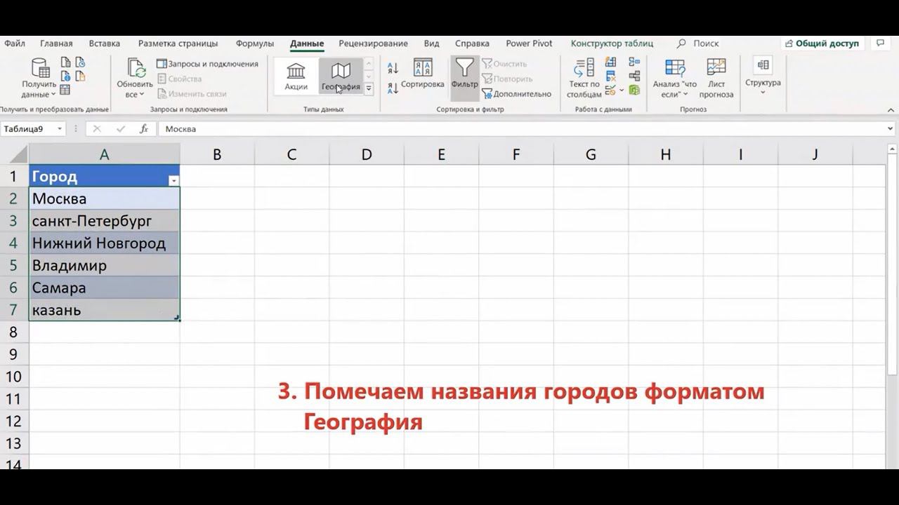 MS Excel Формат данных — География