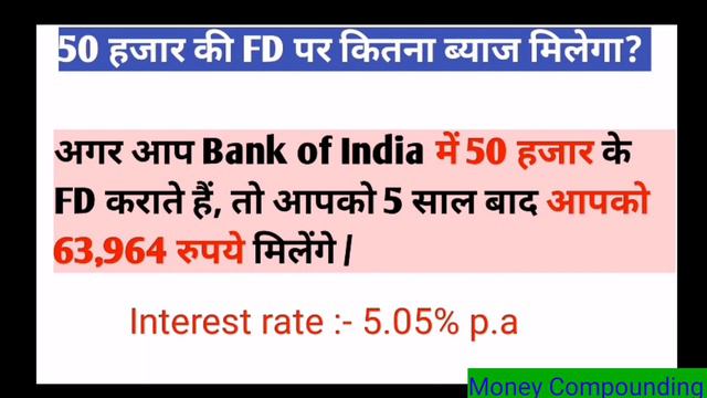 50000 की एफडी कराने पर कितना मिलेगा |SBI,Post office,Canara Bank, Indian Bank,Fd interest rates नमस्कार साथियों, अगर आप बैंक या पोस्ट ऑफिस में FD कराने का सोच रहे हैं तो आपको इस वीडियो जरूर देखना चाहिए, ताकि आपको Fd interest rates 2022 के बारे में जानकारी प्राप्त हो, और आप पैसे निवेश करने का सोचें / इस वीडियो में आप 5 सरकारी बैंक एफडी ब्याज दर और पोस्ट ऑफिस के Fd के बारे में जानेंगे! Your Queries solved :- SBI FD INTEREST RATES 2022 CANARA BANK FD INTEREST RATES 2022 INDIAN BANK FD INTEREST RATES 2022 POST OFFICE FD INTEREST RATES 2022 BANK OF INDIA FD INTEREST RATES 2022 BOI FD INTEREST RATES PUNJAB AND SIND BANK FD INTEREST RATES 2022 # QUERIES #moneycompounding #sbifd #sbifdrate #bankofindiafd #canarabanksharelatestnews #canara_bank #indianbank #punjabbank #postofficefd #postoffice DISCLAIMERS:- This Content is for educational purposes only. Copyright Disclaimer under section 107 of the copyright act 1976,allowance is made for fair use for purposes such as criticism, comment, comment, news, reporting, scholarship, and research. Fair Use is a use permitted by copyright statute that might otherwise be infringing. Non-profit, educational, or personnel use tips the balance in favor of fair use. Note:- Before investing in any scheme please research yourself first, and take deep advice from your financial advisor. Thank you. Happy investing. Also, follow Social Links Website:- https://digitalmoneymaker.in/ Twitter:- https://twitter.com/moneycompound21 Facebook:- https://www.facebook.com/moneycompoundingindia