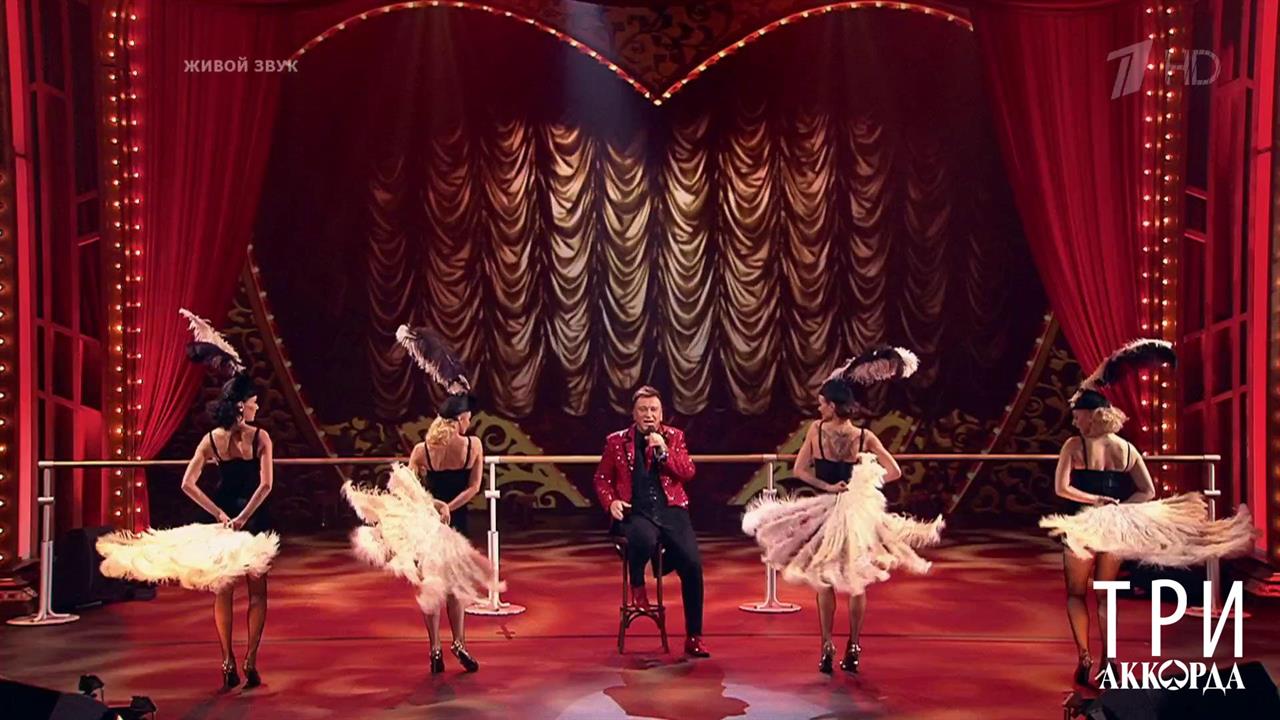 Шестой сезон шоу о самой душевной музыке продолжается! «Три аккорда» — это облеченные в конкурсную форму тематические концерты, где исполнители представляют на суд зрителей собственные интерпретации культовых шлягеров. Проект охватывает все многообразие жанров отечественной музыки, не скованной рамками поп-, рок-эстрады или классики, но при этом пользующейся огромной народной популярностью. Выпуски шоу посвящены городскому романсу, авторской песне, киношлягерам, творчеству русской эмиграции XX века и др. Участники шестого сезона: Сергей Пенкин, Александр Добронравов, Наталья Громушкина, Аглая Шиловская, Алика Смехова, Жан Милимеров, Евгений Дятлов, Елена Максимова, Валерий Яременко и Елена Ваенга. Песни второго выпуска: "Окурочек", "Цыпленок жареный", "Колокольчик", "Жеребенок", "Душа", "Смотрины", "Гоп со смыком", "Черный кот", "Сорок тысяч верст", "Что мне горе". В жюри: Александр Новиков, Сергей Трофимов, Любовь Успенская, Александр Розенбаум. Ведущий — Максим Аверин.