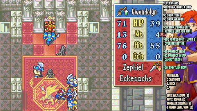 Become a Channel Member! https://www.youtube.com/channel/UCr3Ce5jZKgo8-vP3-KJmUVg/join DISCORD: https://discord.gg/Pj4HpPwupW Indie Game TWITTER: https://twitter.com/CastShadowLight SUPERCHAT RULES: $10 per chapter, force a unit $5 Drop an item $7 Drop a weapon $50 Stop using a Unit (Retires unit for the rest of the run) $100 Force a unit (limit 5) (pulls them out of retirement/always forced) $10 Protect Item (Prevent it from being discarded/also forces it to stay on a unit) $12 Protect Weapon (prevents it from being discarded/forces it to stay on unit) $20 End turn immediately FORCED DEPLOY SLOTS (Limit 8) 1. Sophia (RIP WOLT) 2. SUE (FORCE DA PLOY) 3. WOLT (RIP SHANNA) 4. Gonzales 5. Fir 6. WendyWendyWendyWendyWendy 7. Bartre 8. Lilina CHAT UNIT (VOTED ON) 1. Dieck PROTECTED WEAPONS: 1. Eclipse Sophia 2. PROTECTED ITEMS: 1. CH16 Hero Crest 2. Guiding Ring LV 20 ONLY Sophia 3. Guiding Ring 4. Fae Keeps Stone SUPPORTS: 1. ROY x SHANNA A Support 2. Sue x Wilt A Support #fireemblem #fireemblemstream #fe7