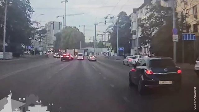 В Краснодаре приезжий из Астрахани нагло развернулся через сплошняк на Старокубанской.