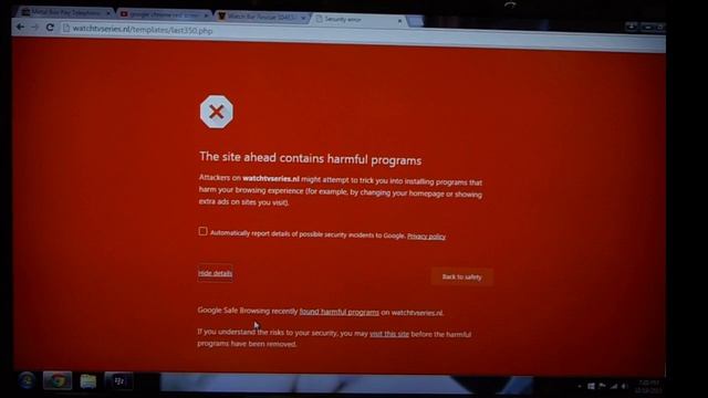 How To Bypass the Google Chrome Red Screen - The site ahead contains harmful programs Complete Google Chrome Red Screen message: "The site ahead contains harmful programs Attackers on watchtvseries.nl might attempt to trick you into installing programs that harm your browsing experience (for example, by changing your homepage or showing extra ads on sites you visit). Automatically report details of possible security incidents to Google. Privacy policy Details Back to safety" SUBSCRIBE: http://www.youtube.com/subscription_center?add_user=SuperDaveVideos MY FACEBOOK: http://www.facebook.com/pages/Dave-Inman/248963781818341 MY EBAY: http://stores.ebay.com/F22-Parts AND http://www.ebay.com/sch/olde8ayuser/m.html?_nkw=&_armrs=1&_from=&_ipg=25 TWITTER: https://twitter.com/SuperDaveVideos