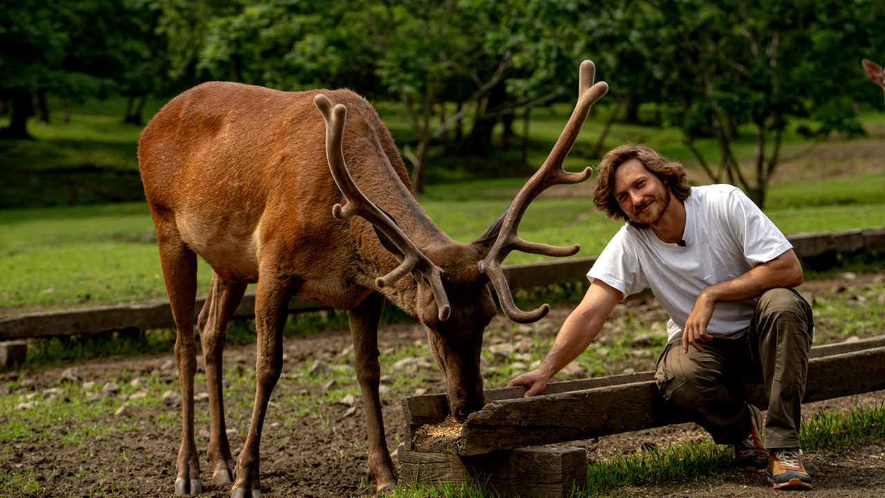 Ведущий Стас Румянцев записывается волонтером в национальный парк «Земля леопарда» – и сразу же вместе с сотрудником парка отправляется в рейд к пещере леопарда. Поездка на квадроциклах по тайге уже сама по себе становится приключением – по дороге они находят кадры хищников, снятые фотоловушками, и свежий поскреб тигра – а это значит, что хищники рядом! Рейд завершен, и Стас едет на новое задание – в питомник оленей. Там он кормит с рук огромного изюбря, осваивает клич, который привлекает пугливых животных, и пробует на вкус оленью соль.