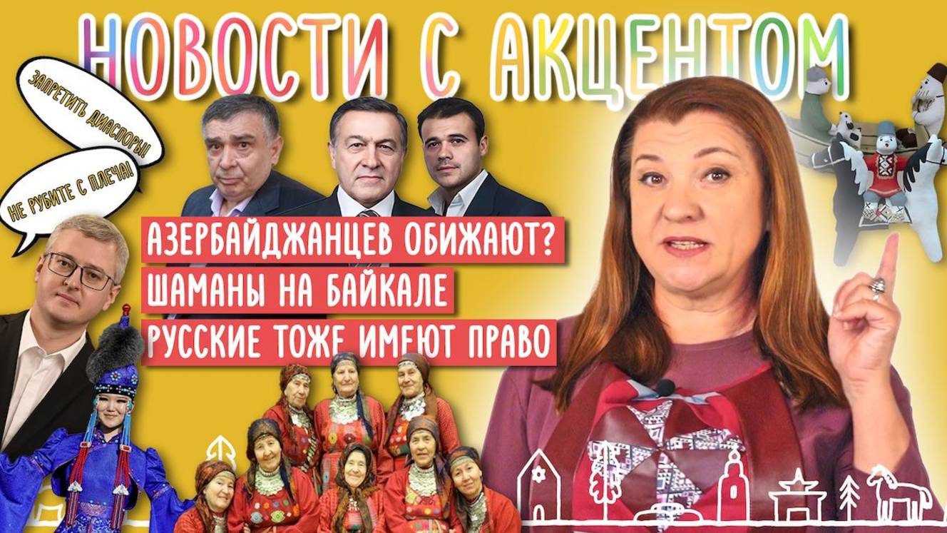 В выпуске № 21 "Новостей с акцентом" от Маргариты Лянге: Азербайджанцы в России - кто кого обижает? Байкал: шаманы, спорт и ритуальные танцы Учимся жить дружно - фестиваль гостеприимства на ВДНХ Камчатка: равноправие без оглядки на национальность Русский Север: каргопольская игрушка в поиске 00:00:14 Анонс 00:00:47 Азербайджанцы в России. 00:03:06 Ёрдынские игры в Иркутской области 00:03:58 Фестиваль «Дружба народов» и удмуртский Гербер 00:05:44 Рыбалка для всех 00:07:11 Праздник ремесленников в Каргополе 00:08:00 Наши площадки новости #россия #лянге #нацакцент #этно #Азербайджанцы #Ёрдынскиеигры #Иркутскаяобласть #Дружбанародов #гербер #удмуртия #Камчатка #льготы #Каргопольскаяигрушка #РусскийСевер #диаспора #коренныенароды
