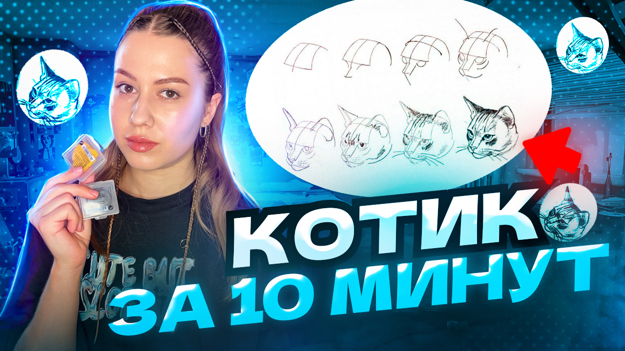 НАРИСУЕМ КОТИКА ЗА 10 минут