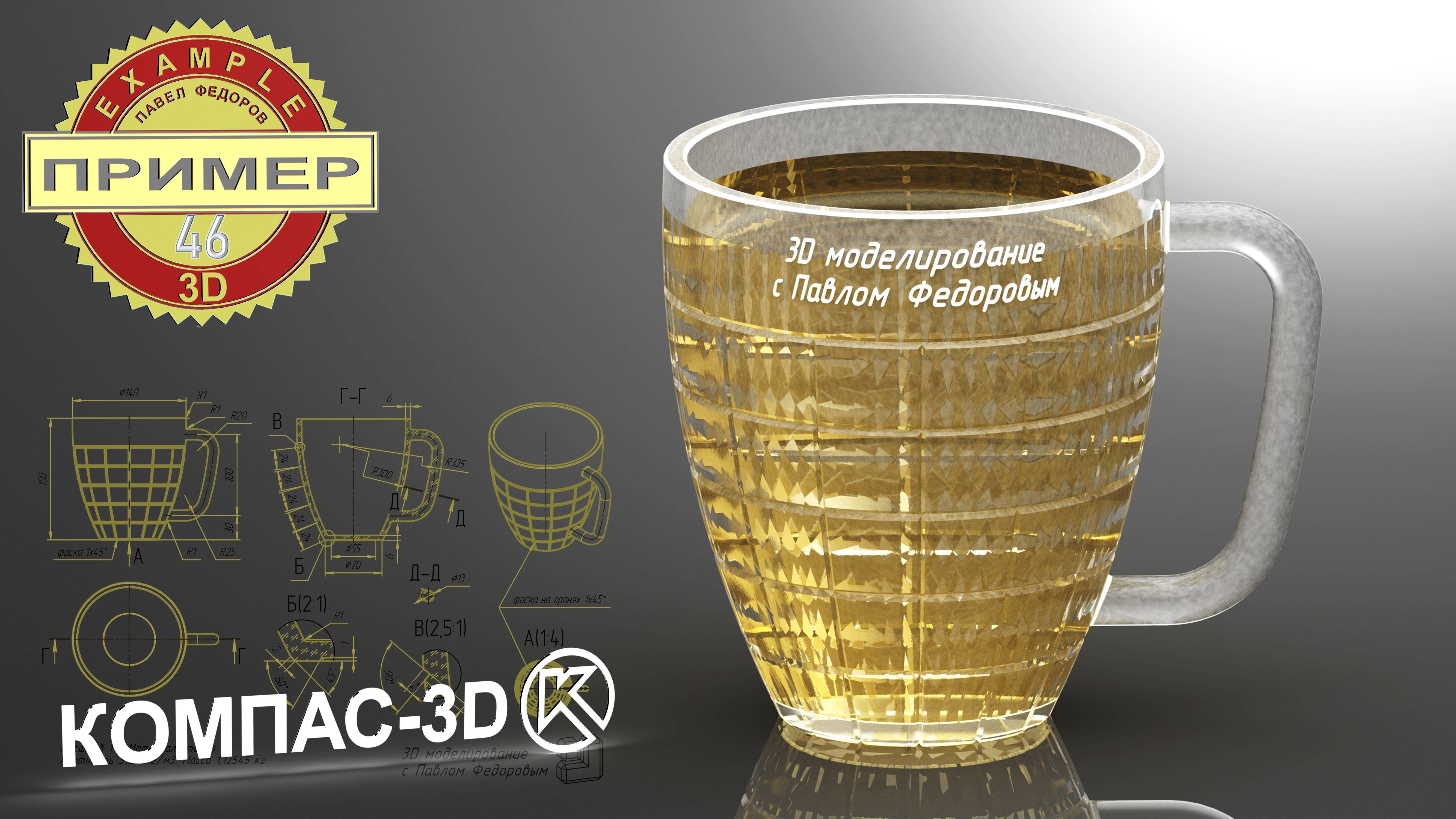 Компас 3Д - обучение с нуля, уроки, моделирование. 3D модель кружка #46