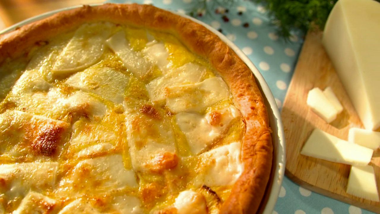 Рецепт пирога с семгой, козьим сыром и патиссонами
