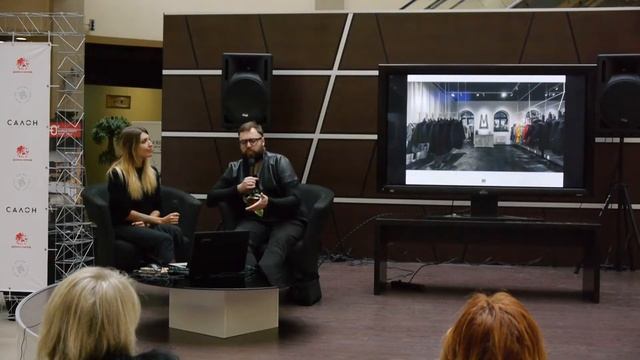 Дизайнер интерьера Катерина Чурина с заказчиком проекта шоу-рума Сони Матвеевой Денисом Трепаковым на лекии-дискуссии в ТЦ "Домосфера" о том, как найти взаимопонимание с дизайнером и зачем он нужен.