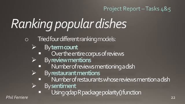 A detailed review of my Capstone Project for the Coursera Data Mining Specialization offered by the University of Illinois at Urbana-Champaign, by Phil Ferriere (2016) [42 slides, 25mn] Contact: https://www.linkedin.com/in/philferriere For a shorter overview [16 slides, 12mn], please check out https://youtu.be/f4PEV6KpcXc
