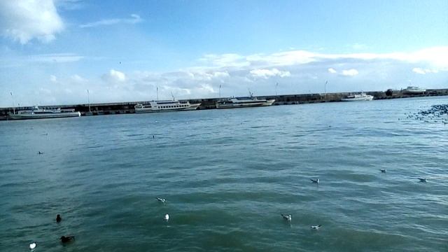 Ялта после шторма. 27.11.23. Стая бакланов ( уточек нырков) у причала Морвокзала.