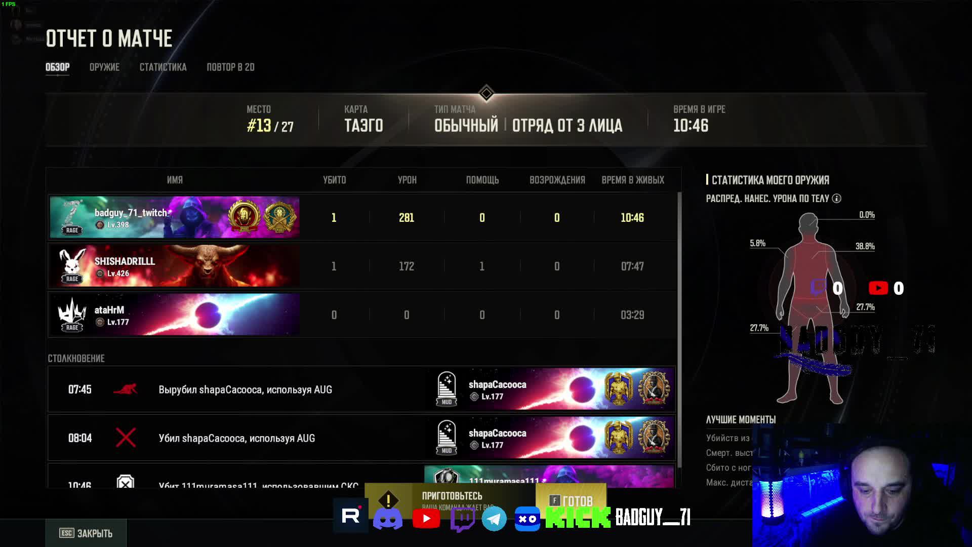 Поддержать стримера: https://www.donationalerts.com/r/badg... Карта для прямого доната: 2200 3005 6657 3711 Канал на Twitch: / badguy_71 Мой телеграм канал: https://t.me/badguy_71 Мой Kick: https://kick.com/badguy-71 Мой VK Play: https://live.vkplay.ru/badguy_71 Всем привет! Зовут Дима, 41 годик, играю в pubg много и с удовольствием. Стримы каждый день. Мой компьютер Процессор Intel Core i5-11400F Видеокарта Palit GeForce RTX 3060 Ti Оперативная память 32 gb
