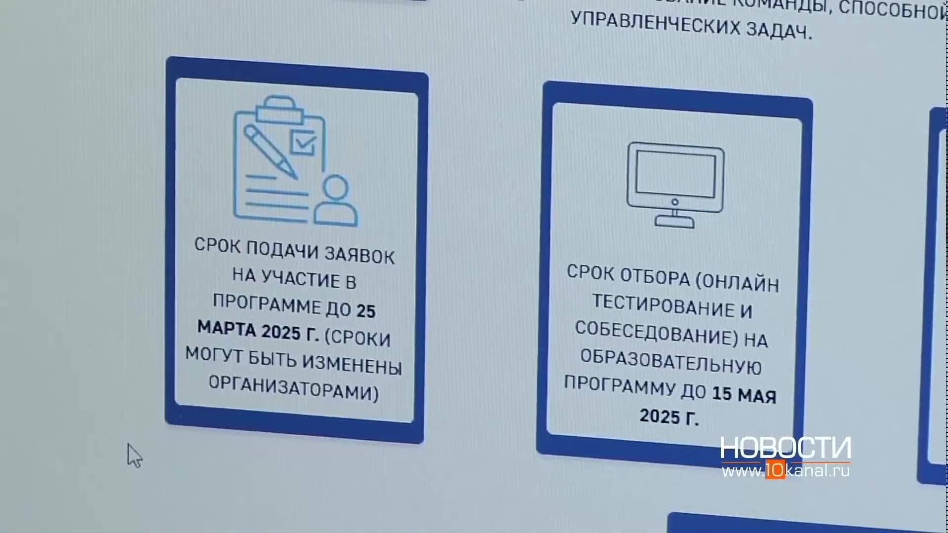 До 25 марта можно было заявиться на участие в региональной программе подготовки кадров «СВОи Герои. Куzбасс». ___________________________________________________ Смотрите «10 канал» онлайн: https://www.10kanal.ru/online Подписывайтесь: Telegram: https://t.me/news10kanal ВКонтакте: https://vk.com/nnt_10kanal Дзен: https://dzen.ru/10kanal Rutube: https://home.strannik-j.org/channel/24959295/