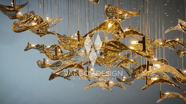 Эта композиция похожа на стаю птиц в момент взлёта. Ни одной повторяющейся формы, ни одной фиксированной траектории — только ощущение движения, воздуха и паузы между взмахами крыльев. Прозрачное и дымчато-янтарное стекло ловит свет и преломляет его мягко, без резких акцентов. Латунные элементы не прячутся, а становятся частью графики — как тонкий скелет, на котором держится вся сцена. Световая композиция Vargov®Design LC0264 собирает пространство, задаёт ритм, создаёт ощущение глубины и масштаба — особенно в высоких интерьерах, где свету есть куда «дышать». Эта световая композиция про свободу. Про момент, когда всё уже началось, но ещё не закончилось.