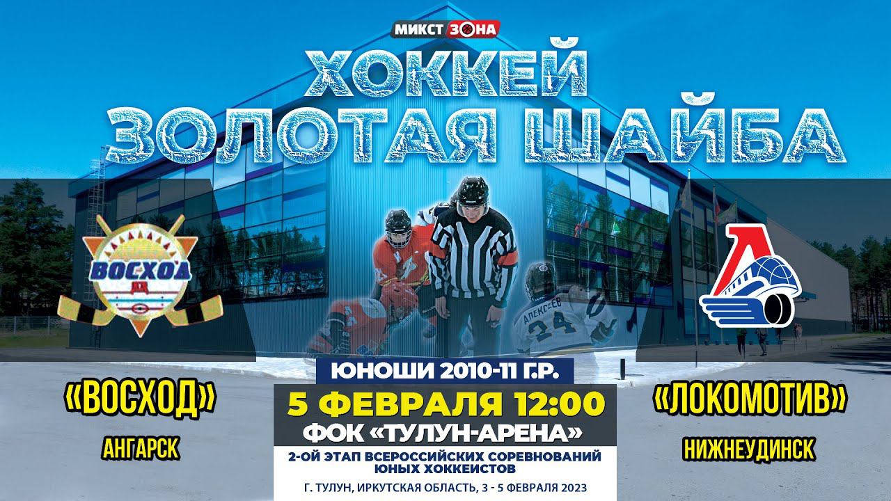 Матч между командами «Восход» (Ангарск) – «Локомотив» (Нижнеудинск). 2-ОЙ ЭТАП ВСЕРОССИЙСКИХ СОРЕВНОВАНИЙ ЮНЫХ ХОККЕИСТОВ. Юноши 2010-11 г.р. Место проведения: ФОК «Тулун-Арена», г. Тулун, Иркутская область. 3 - 5 февраля 2023 года.