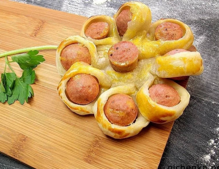 Рецепт булки с сосиской ввиде солнышка, быстро и вкусно