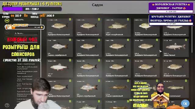 ⭐️ Поддержать стримера, прокрутить рулетку, заказать музыку или дать задание (вся информация по ссылке), огромное спасибо за поддержку🤝: https://donatty.com/kabanych (или: https://www.donationalerts.com/r/kabanych ; https://new.donatepay.ru/@kabanych) Переводы по СБП (Озон банк): +7 910 617 41 10 Карта Сбербанка: 5469 9802 2744 7550 Карта Тинькофф: 2200 7013 6590 0908 Карта Альфа-банка: 5559 4941 9301 7646 ⭐️ Все способы поддержать регулярные стримы по ссылке🤝: https://socprofile.com/kabanych.vlog ⭐️ КОРОЛЕВСКАЯ РУЛЕТКА👑 с самыми топовыми призами - в рулетке ТОЛЬКО ЛУЧШИЕ снасти, монеты и премы, ДЖЕКПОТ - самая дорогая катушка в игре РАПТОР🤯💰 (1 рулетка - 1000 рублей) Призы (только голда, снасти и премы): Топовые снасти: ДЖЕКПОТ - Electro Raptor 40, Venga C40 2S, SAT RIGAL, Zeiman Overlord 88, Syberia Caliber Raven, Trident Full Metal 60, SYBERIA CALIBER HSV Премы: ГОД према, ПОЛГОДА према, 90 ДНЕЙ према и другие ⭐️ СТАНЬ VIP, поддержав меня на Boosty, получи в подарок мерч канала, мои треки на тему рыбалки, твой ник на экране стрима, сигну, стримы на заказ и многое-многое другое😎: https://boosty.to/kabanych ⭐️ ОТПРАВЬ МЕМЧИК на стрим😈: https://memealerts.com/kabanych ⭐️Лучшие каналы с точками клёва в РР4, подпишись: https://t.me/kabanych_kaban (Телеграм); https://vk.com/kabanych_kaban (ВК) ⭐️Донат криптой (все актуальные адреса)👍: https://socprofile.com/kaban ⭐️ ВСЕ ССЫЛКИ на соцсети (подписывайся, тут интересно👍🔥): https://socprofile.com/kabanych ⭐️ Донаты-задания: 🎵Заказ песни/клипа на стрим: 100 руб 🎶Заказ плейлиста на весь стрим: 2000 руб 🏆Заказ турнира: 600 руб 🍷Выпить рюмку крепкого на стриме: 1100 руб 🐠Обзор вашего аккаунта в рыбалке: 300 руб 👌Выбрать водоем на 1 час (Штрафной пруд дороже) : 600 руб 🚨 Пойти на Штрафной пруд: 3000 руб 🎩Отпустить трофейную рыбу (редкий троф дороже): 500 руб 👑Персональная роль на канале (любая на ваш выбор): 5000 руб 💥Сигна от стримера: 500 руб ⚔️Заказать другую игру/фильм на стрим: 4000 руб ✌️Посмотреть ваше видео на стриме (до 15 минут): 500 руб 😲24-часовой стрим: 30000 руб 🕒+1 час к стриму (максимум 4 часа): 1000 руб ✅Закончить стрим: 5000 руб 🍾Алкострим: 5000 руб (+стоимость напитков) 😤Челлендж (любой на ваш выбор): 1500 руб 🍻Передать привет/поздравить на стриме: 100 руб 🤣Рассказать анекдот: 150 руб 😲12 часов стрима: 15000 руб 🐟 Стрим на заказ по РР4 (тематика, водоем, рыба): 2000 руб 😢 Ловить на слабые снасти: 1300 руб 🆓 Отпускать всю рыбу 1 час: 800 руб 🐠 Ловить на калибр на море: 1500 руб ⭐️УБОЙНЫЕ ДОНАТЫ, ПОПРОБУЙ🔥: ОСОБЫЕ ОПОВЕЩЕНИЯ: больше 50 (девушка с автоматом); больше100 (СИГМА); больше 300 (ЛЮБОВЬ); больше 500 (ДИ-КАПРИО СТАЙЛ); больше 1000; больше 1500; больше 5000 (🔥МАНИГАН🔥) 😢СКРИМЕРЫ, ИСПУГАЙ ВСЕХ НА СТРИМЕ😈 333 руб - ЖУТКИЙ СКРИМЕР😈 666 руб - ПОСТРАШНЕЕ😲 3333 руб - САМЫЙ СТРАШНЫЙ СКРИМЕР😱😨 100 руб - Покататься на кабанчике 150 руб - Вызвать Джона Сину на стрим 200 руб - Кабаныч обнимает донат🐗😂 222 руб - Кабаныч забивает шар в лузу 300 руб - Гачи-донатик 350 руб - КАЛИНКА-МАЛИНКА💃🕺 500 руб - Танец кабанчика😈 1000 руб - ВЫПЬЕМ ЗА ЛЮБОВЬ❤️🍻 1500 руб - РАССТРЕЛ СТРИМЕРА ИЗ МАНИГАНА😳😱 40000 руб - Сбрить бороду в прямом эфире🧔 😈ГОРЯЧИЕ ДОНАТЫ, ПОПРОБУЙ😈 🔥250 руб - ЛАЙТОВАЯ ВЕРСИЯ😍 🔥550 руб - ПОГОРЯЧЕЕ🔥 🔥1111 - 🤩ЛАЙТ С****ТИЗ🔥 🔥2500 - 🙀САМЫЙ ГОРЯЧИЙ С****ТИЗ🔥 Лучшие SHORTS по игре Русская Рыбалка 4, трофы, смешные моменты и огромный улов, зацени: https://www.youtube.com/playlist?list=PLisOIHK4ZBWku-Vdesr4WJW1EHMMGUjSb Лучшие гайды, сводка по водоёмам, новые точки для фарма РР4: https://www.youtube.com/playlist?list=PLisOIHK4ZBWnCe-sEfXqrsMgDnKm7CHvO Лучшие стримы Русская Рыбалка 4: https://www.youtube.com/playlist?list=PLisOIHK4ZBWkq8DS6_e4bPsquBQSSsHT3 🔴 РР4 СТРИМ | НОВЫЕ ТОЧКИ для Фарма! Розыгрыш наживк