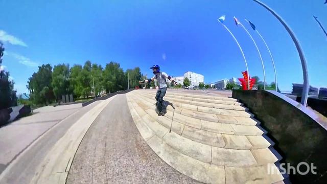 Спуск по лестнице на моноколесе