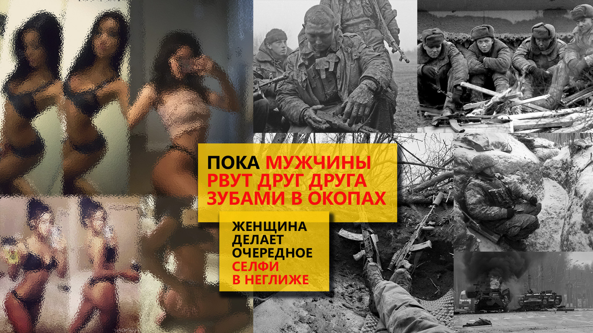 Пока мужчины рвут друг друга зубами в окопах женщина делает очередное селфи в неглиже