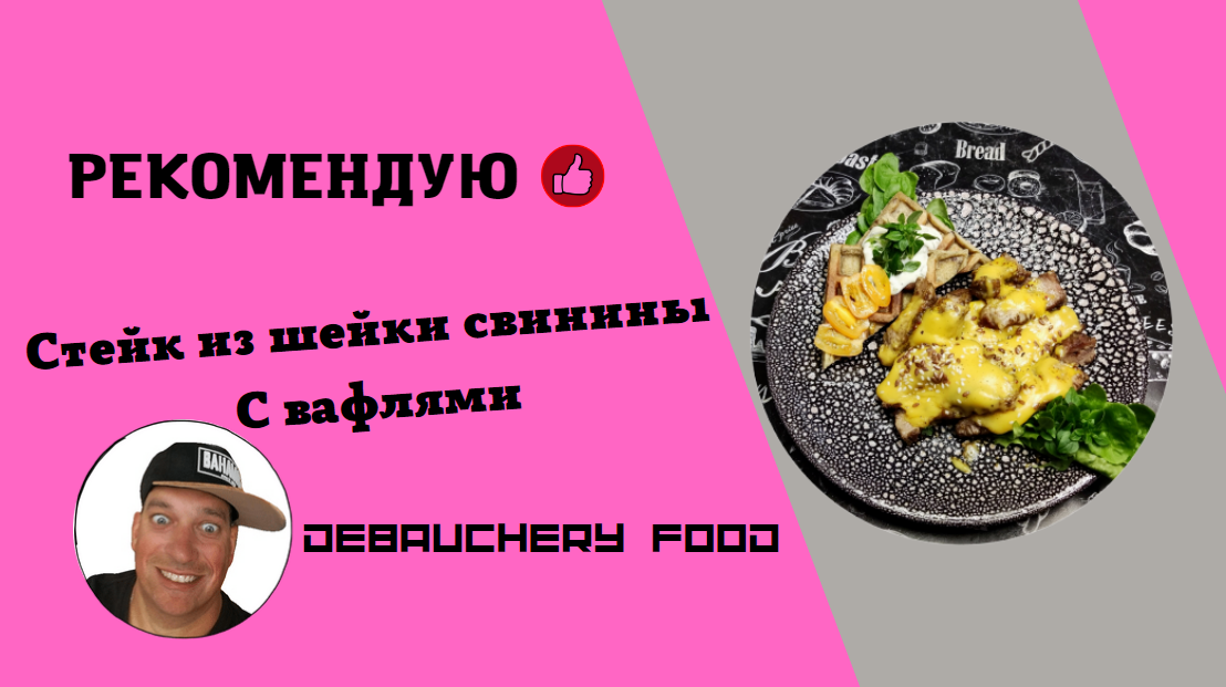 Стейк из шейки свинины с вафлями.