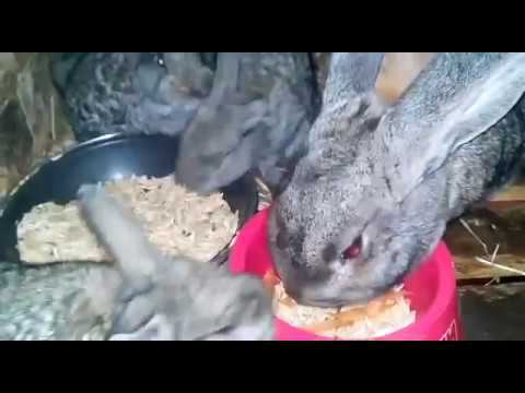 Крольчата растут быстро уже перешли с молочка на сухой корм.