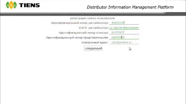 Регистрация в DIMP системе Тяньши