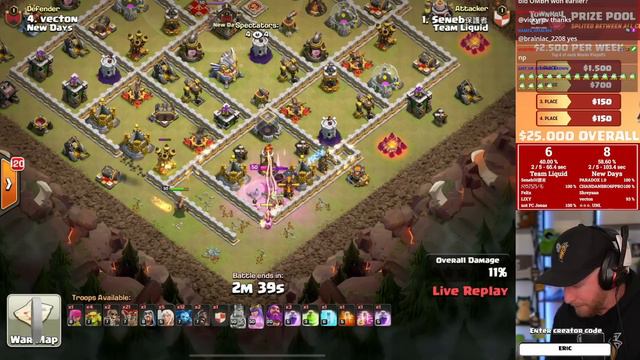 Clash of Clans | Team Liquid vs New Days | TH11 CUP Qualifiers in $25,000 RUSH.GG Tournament! Best TH11 Attack Strategies in Clash of Clans with NO SIEGE MACHINES! OneHive hats and hoodies and other fun Clash related MERCH are IN STOCK! Order now and use code ERIC at checkout for 10% OFF! Merch LINK: https://gamer.playmakerswanted.com/store/oddities Support me and use the code ERIC to get a 10% off on all the Blueprint Website Packs. https://blueprintcoc.com/code-ERIC Blueprint also makes 6 EXCLUSIVE bases (TH9-14) for CWE Channel Members/Twitch Subscribers, connect it to Discord and join my server to get the base links from VIP Base Channels HELP SUPPORT THIS CHANNEL Enter in code ERIC at https://burntbase.com/content-creator ALSO Get 5 Free Scans on Burntbase.com! Join their Discord Server and type !ERIC into the Scan-a-Base Channel to get a free trial! https://discord.gg/GNcRqva HELP SUPPORT THE CHANNEL, use Code: ERIC Click Link to AUTO ENTER IT: https://link.clashofclans.com/en?action=SupportCreator&id=ERIC Expires EVERY 7 Days so put it in before you get your Gold Pass! Don't Miss a LIVESTREAM by FOLLOWING me at: https://www.twitch.tv/eric_onehive Follow me at Discord/Social Media HERE: https://discord.gg/XD8agVY https://www.facebook.com/EricOnehive/ https://www.instagram.com/ericonehive/ https://twitter.com/ericonehive https://www.tiktok.com/@ericonehive #ClashofClans #OneHive #Esports IF YOU THINK YOU HAVE WHAT IT TAKES TO JOIN ONEHIVE, APPLY AT: https://discord.gg/OneHive Apply to Double Barrel at: https://discord.gg/Xb8dek2 For Business Inquiries ONLY contact me at clashwitheric@aftershockmediagroup.com For Game related questions, please use Discord primarily or any social media. ________________MUSIC_________________ Enjoy the Music on this video?! Get it for yourself at https://soundstripe.com/?fpr=clashwitheric Use PROMO code "CLASHWITHERIC" for 15% off SOUNDSTRIPE membership!