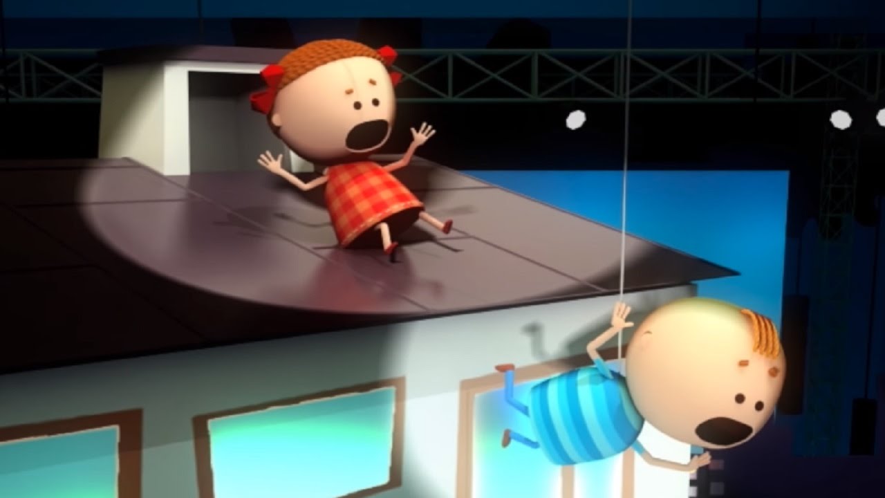 Город как-то в воскресенье день рождения отмечал! И назначен был на вечер главный праздничный салют! Саше с Машей захотелось посмотреть на тот салют, и в назначенное время дети вышли на балкон. Но закрыли крыши Саше с Машей весь обзор! И поднялись Саша с Машей поскорее на чердак, чтоб салютом любоваться с крыши дома своего. И на крышу они быстро взобрались, только крыша оказалась очень скользкой от дождя! И скользят теперь все ниже Саша с Машей! Кто же их теперь спасет?