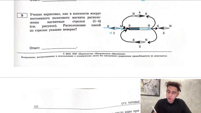 Ученик нарисовал, как в плоскости вокруг постоянного полосового магнита расположены - №28830