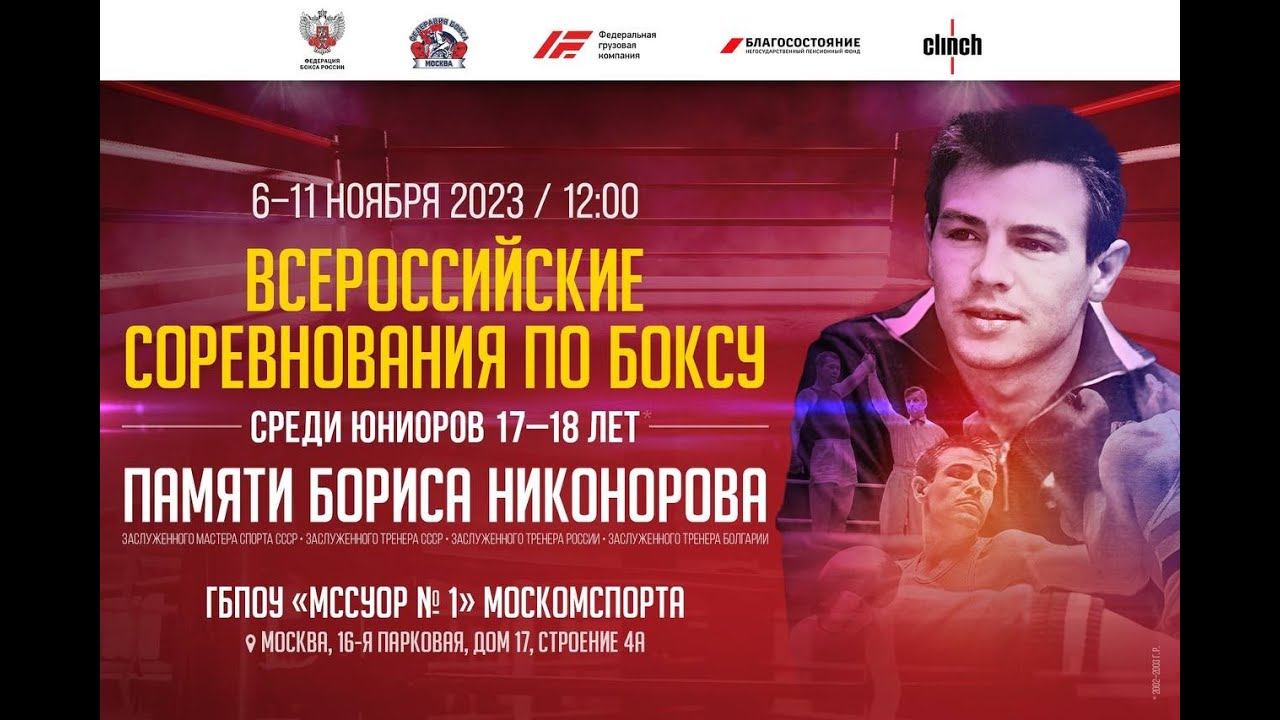 Всероссийские соревнования по боксу «Памяти ЗМС СССР, ЗТ СССР, ЗТ России, ЗТ Болгарии Никонорова Б.Н.» среди юниоров 17-18 лет. Уважаемое боксёрское сообщество! Московская Государственная Академия Физической Культуры, Кафедра Теории и Методики Спортивных Единоборств и Тяжелой атлетики, приглашает вас на день открытых дверей, который состоится 9.12.2023г. https://www.mgafk.ru Подписаться на канал: https://www.youtube.com/c/RussianBoxingFederation/?sub_confirmation=1 Федерация бокса России: http://rusboxing.ru/ ВКонтакте: http://vk.com/rusboxing Телеграм: http://t.me/RussianBoxers Одноклассники: http://ok.ru/group/64339915505917/ Дзен: https://zen.yandex.ru/rusboxing Состав пар 1-53 МЕДВЕДЕВ Семён Москва НИКИТИН Егор ЦФО Московская 2-54 МАКОВЕЙ Матвей Москва МУХАМЕТЗЯНОВ Фикрат Москва Весовая категория – 54 кг 3-55 БАРИНОВ Евгений ПФО Марий-Эл ИСМИХАНОВ Алиага ПФО Оренбургская 4-56 ЖЕНИШБЕКОВ Нурислам Москва НАЗАРОВ Артём СФО Красноярский Весовая категория – 60 кг 5-57 ЧЕРЕПНЯ Богдан Москва АВЕТИСЯН Карен СЗФО Новгородская 6-58 ХАЙРУЛЛИН Булат Москва БЕЛОВ Данил ЦФО Курская Весовая категория – 63,5 кг 7-59 ГЕВОРГЯН Эрик Москва ИСТОМИН Виктор УФО Свердловская 8-60 ЧЕРНЯЕВ Даниил ЦФО Белгородская КАРАЧИНЦЕВ Иван Москва Весовая категория – 75 кг 9-61 КИРИЛЮК Кирилл ДФО Хабаровский ДОВЖУК Руслан Москва 10-62 ФУРСОВ Егор Москва ГУРОВ Николай Москва Весовая категория – 86 кг 11-63 НАБИЕВ Теймураз ЦФО Московская ФЕДОСОВ Георгий Москва 12-64 ГЕРМИХАНОВ Мухаммад Москва КАМБЕГОВ Артур ЦФО Московская Весовая категория – 92 кг 13-65 НИКУЛИЩИН Сергей ЦФО Владимирская ЗАВГОРОДНИЙ Андрей Москва Весовая категория – 92+ кг 14-66 ЛЕОНОВИЧ Александр ЦФО Белгородская МУЦОЛЬГОВ Дени Москва 15-67 НЕСТЕРОВ Андрей Москва ПОПОВ Владислав СКФО Ставропольский #бокс #boxing