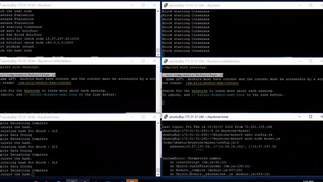 Live demo of Upshot Blockchain running multiple miners on the node, and creating blocks.