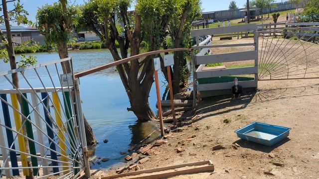 Пеликан и лебедь на страусиной ферме — неожиданная встреча
