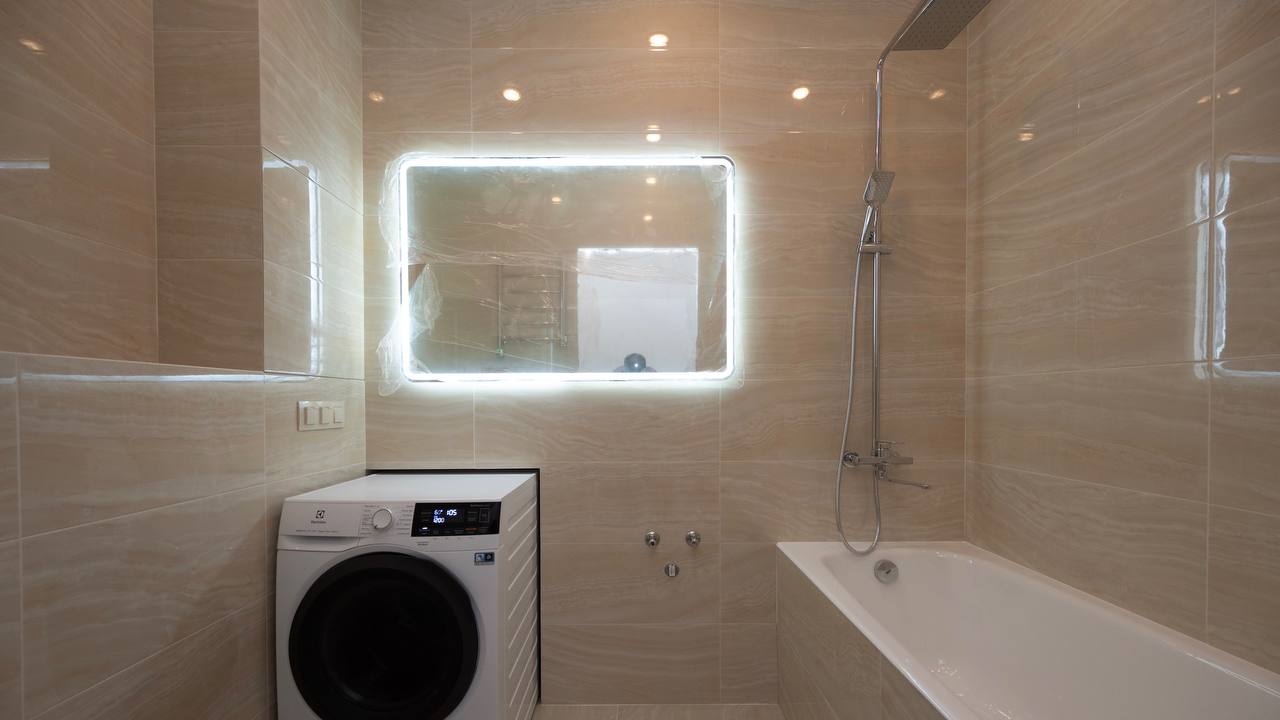 Капитальный ремонт совмещенного санузла от застройщика компании ПИК по адресу: г. Москва, ул.красноказарменная 14А к1 Площадь санузла: 4,3 м2. Особенности этого объекта: ?высота потолков 3 м; ?отдельный стояк на дренаж; ?компанией застройщиком уже установлен водонагреватель; ?перегородки в санузлах из пазогребня (дополнительно возводить нам ничего не нужно) ⠀ Совмещённый санузел Что было сделано: ?стены от застройщика хорошие - из пазогребня, поэтому мы произвели демонтаж только внутри; ?выровняли стены внутри и снаружи и подготовили их под укладку плитки; ?сделали штробы под коммуникации и электрику; ?выполнили новую разводку труб; ?облицевали плиткой (углы на коробах выполнены под 45°). ?смонтировали сантехнический шкаф с нажимным лючком «Шагма» и собрали коллекторный узел: гребенки Far, вывод на гигиенический душ, компенсатор гидроудара и водонагреватель от застройщика (мы его перенесли); ?сделали нишу под стиральную машинку; ?смонтировали натяжной потолок с точечными светильниками и вентилятором (с отдельным включением); ⠀?установили: инсталляцию, ванну, душевую стоку «тропический душ», сделали подготовку под раковину с тумбой (позже их установят), зеркало с подсветкой, электрический полотенцесушитель и стиральную машинку. Наш сайт: http://idealniy-dom.ru/ ВК: https://vk.com/public.idealniy_dom Телеграм: https://t.me/idealniydomru Яндекс Дзен: https://zen.yandex.ru/id/622a0f4a26dfee1a63fcc150 Рутуб: https://home.strannik-j.org/channel/23950929/ Ютуб: https://www.youtube.com/c/ИдеальныйДом Инстаграм: https://www.instagram.com/idealniy_dom/ ⠀ Меня зовут Иван Козаченко ?♂️ ?? https://vk.com/id166851003 По вопросам ремонта звоните по тел.: ? 8 (495) 220-74-08 ⤴️ Выезд ? на замер и смета бесплатно?
